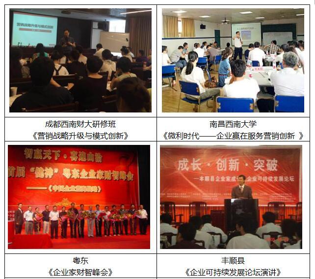 論壇、院校:北京大學(xué)總部、北京大學(xué)重慶中心、北京大學(xué)貴州中心、北京大學(xué)梅州中心、北京大學(xué)惠州中心、清華大學(xué)深圳MBA總裁班、南昌大學(xué)MBA總裁班、大智慧財富論壇、西子財富企業(yè)家峰會、培訓(xùn)行業(yè)趨勢論壇(千人)等