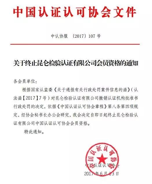 一機構(gòu)被CCAA終止會員資格據(jù)通知,根據(jù)國家認監(jiān)委《關(guān)于通報有關(guān)行政處罰案件信息的函》(認 法函【2017】7 號)對昆侖檢驗認證有限公司撤銷認證機構(gòu)批準書行政處罰的決定,依據(jù)《中國認證認可協(xié)會章程》第八條第四項規(guī) 定,經(jīng)協(xié)會秘書長辦公會研究,中國認證認可協(xié)會決定自即日起終止昆侖檢驗認證有限公司中國認證認可協(xié)會會員資格。 據(jù)了解,2017年5月25日,國家認監(jiān)委對昆侖檢驗認證有限公司作出撤銷認證機構(gòu)批準書的行政處罰。昆侖檢驗認證有限公司在對兩家公司實施質(zhì)量管理體系認證時,未能確保認證活動的客觀、真實,結(jié)論失實,嚴重影響了認證活動的有效性和真實性。 同時,還違反了《認證機構(gòu)管理辦法》第十八條第一款、第二十二條、第二十三條第一款的規(guī)定,情節(jié)嚴重。國家認監(jiān)委依據(jù)《認證機構(gòu)管理辦法》第五十二條第(二)項的規(guī)定,對昆侖檢驗認證有限公司作出如上行政處罰決定。 |