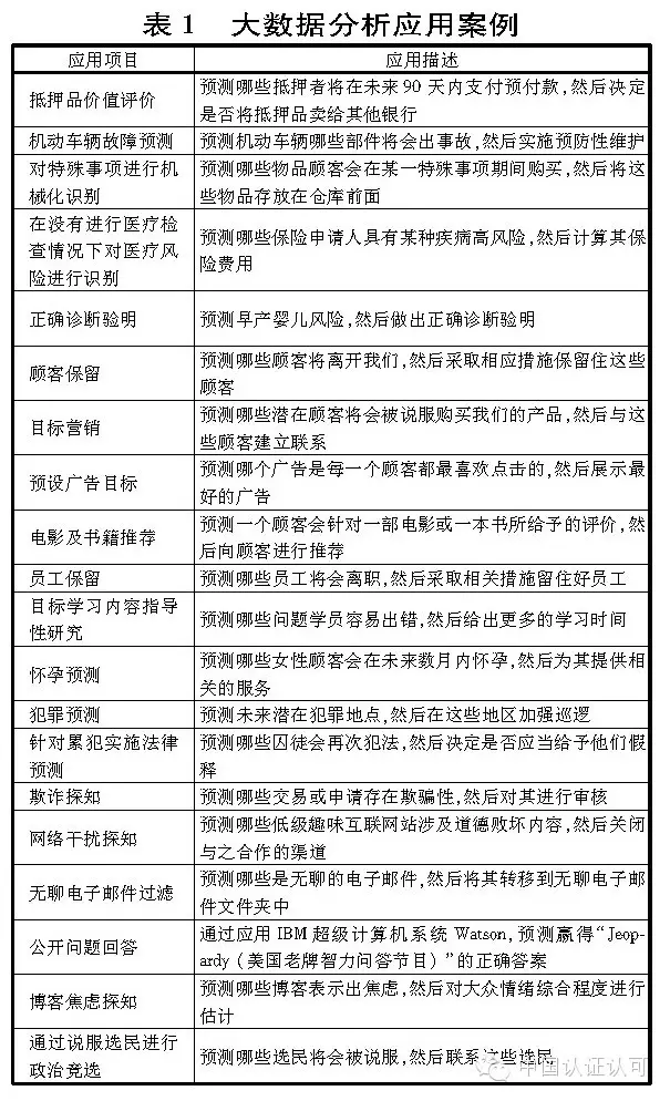 質(zhì)量專業(yè)工作者必須幫助其所在組織獲取更多數(shù)據(jù),并通過大數(shù)據(jù)分析來協(xié)助做出正確決定(如表1中所展示大數(shù)據(jù)分析應(yīng)用案例)。