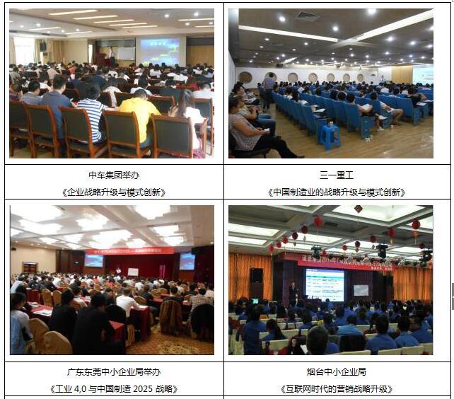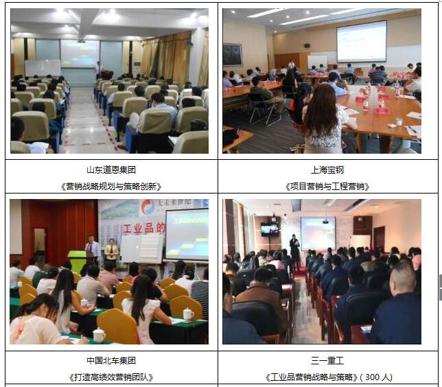 服務(wù)過的部分企業(yè): 北京大學(xué)EMBA、清大高培(清華大學(xué))、浙江大學(xué)MBA、中山大學(xué)MBA、中車集團(tuán)、中國電信、寶鋼集團(tuán)、特工電力集團(tuán)、玉柴動(dòng)力股份、中國電科第55研究所、中國核工業(yè)部、上海中波輪船、中國能建集團(tuán)裝備公司、一汽客車股份公司、上海奔騰電器公司、浙江正泰集團(tuán)、浙江娃哈哈集團(tuán)、海南養(yǎng)生堂藥業(yè)、陜西漢德車橋、德國漢高中國公司、深圳匯川科技有限公司、山武漢農(nóng)商行(輪訓(xùn)5期)、香港亞洲商學(xué)院MBA、廣東省電信公司數(shù)據(jù)通信局、廣州移動(dòng)、廣東眾志通信、沈陽奧維通信集團(tuán)、中國北車集團(tuán)濟(jì)南同力公司、唐山北車軌道運(yùn)營有限公司、中國南車集團(tuán)青島四方公司、龍大集團(tuán)、山東三元集團(tuán)、杭州勝達(dá)集團(tuán)、杭州綠苑集團(tuán)。河南電力、湖北長江電氣有限公司、智翔鋪道技術(shù)工程有限公司、河南華飛電子、溫州光科電器有限公司、山大華天科技、泰安康平納機(jī)械公司、寧波伊仕通科技、吉田拉鏈、深圳市金科威實(shí)業(yè)有限公司、青島特銳德電氣股份有限公司、山東道恩集團(tuán)、太陽鳥游艇股份有限公司、青島雙瑞海洋環(huán)境工程股份有限公司、焦作光源(7期)、遠(yuǎn)東電纜、浙江佑謙特種材料有限公司、山東力諾玻璃制品有限公司、南京華脈科技(5期)、上?敌箩t(yī)療投資集團(tuán)、牧野機(jī)床、寧波藍(lán)野醫(yī)療器械有限公司、煙臺冰輪集團(tuán)、瑞祥集團(tuán)有限公司、廣西華沃特生態(tài)肥業(yè)、威勝集團(tuán)有限公司、義烏美能筆業(yè)、濟(jì)南天辰、北京大津硅藻泥、山東齊魯萬和醫(yī)藥營銷有限公司、中榮印刷、恒昌涂料等多家中大型企業(yè)。 部分授課照片: