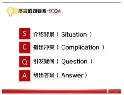 演繹論證結(jié)構(gòu) 1.標(biāo)準(zhǔn)式 2.常見式 案例練習(xí):演繹論證 二、 歸納論證結(jié)構(gòu) 1.時(shí)間順序 2.結(jié)構(gòu)順序 3.重要性順序 4.分類原則:MECE原則 案例練習(xí):歸納論證 三、 歸納與演繹的轉(zhuǎn)換 四、職場(chǎng)溝通的歸納演繹 第四講:序言的講故事結(jié)構(gòu) 一、 序言結(jié)構(gòu)的基本要素:SCQA