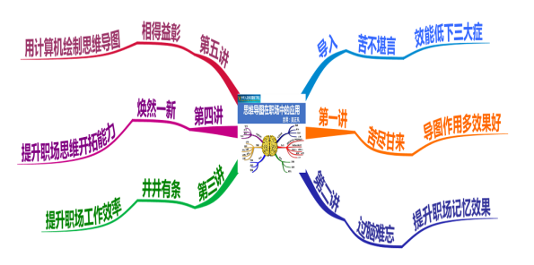 第一講:苦盡甘來(lái)----思維導(dǎo)圖作用多、效果好 一. 思維導(dǎo)圖概述 1. 思維導(dǎo)圖是什么 2. 構(gòu)成要素 3. 誕生由來(lái) 4. 七大主要作用 二. 如何閱讀一份思維導(dǎo)圖 1. 思維導(dǎo)圖的三種類型 2. 閱讀思維導(dǎo)圖的三步曲 三. 怎樣繪制一張思維導(dǎo)圖 1. 思維導(dǎo)圖的分類 2. 繪制前的二項(xiàng)基礎(chǔ)準(zhǔn)備工作 3. 思維導(dǎo)圖繪制的四個(gè)核心步驟
