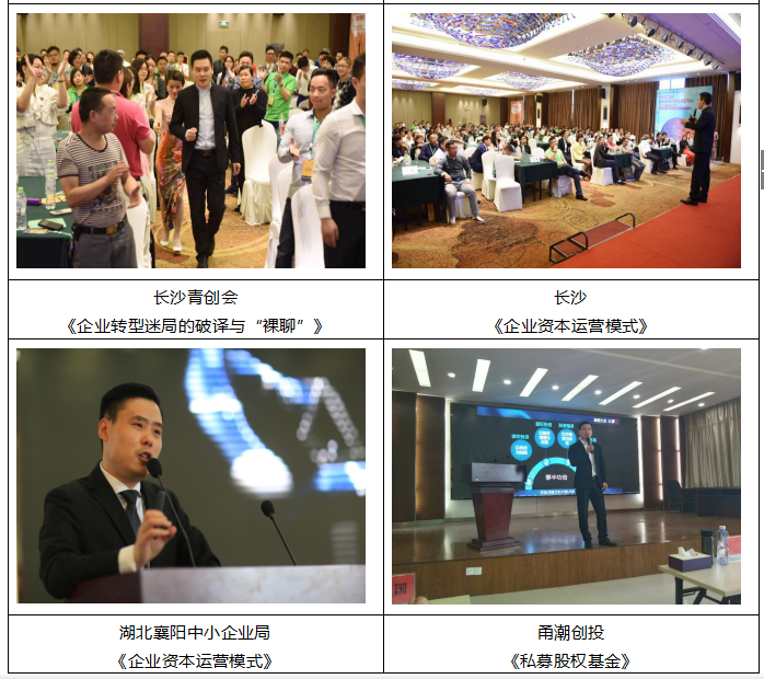 主講課程: 《私募股權(quán)基金》 《企業(yè)融資36計(jì)》 《企業(yè)上市直通車》 《企業(yè)資本運(yùn)營(yíng)模式》 《資本路徑與法律規(guī)范》 《股權(quán)激勵(lì)設(shè)計(jì)與資本策略》 授課風(fēng)格: ■既有理論派講師的縝密,又有實(shí)踐派講師的落地,更有主流派講師的深入淺出與大道至簡(jiǎn); ■ 課程實(shí)用性強(qiáng),并以實(shí)體產(chǎn)業(yè)為主,嫁接資本,使企業(yè)自身價(jià)值快速倍增; ■ 以專業(yè)、高效、創(chuàng)新、厚德的精神,為中小企業(yè)在升級(jí)與轉(zhuǎn)型中提供一攬子的金融服務(wù)。