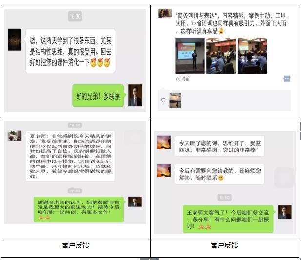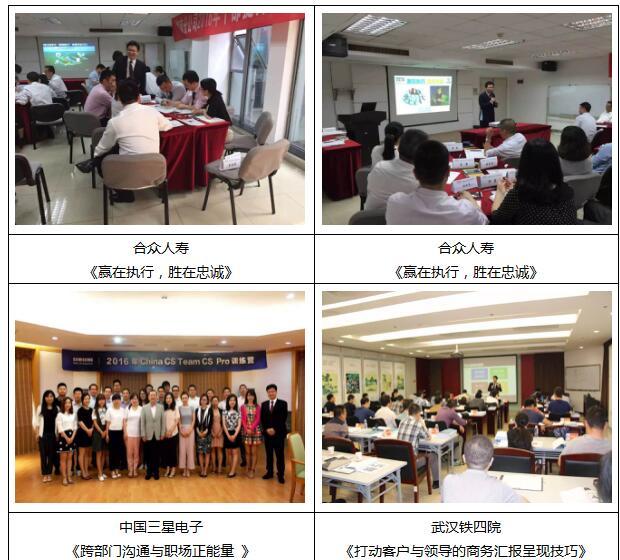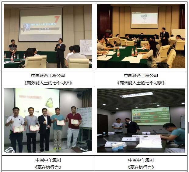 通信業(yè):中國(guó)聯(lián)通河南分公司、中國(guó)電信、中國(guó)移動(dòng)江蘇分公司、中國(guó)鐵通河南聯(lián)通、陜西移動(dòng)、四川達(dá)州移動(dòng)、山東煙臺(tái)移動(dòng)、永州移動(dòng)、惠州移動(dòng) 大型集團(tuán):順馳集團(tuán)、北京城建集團(tuán)、沿海建設(shè)集團(tuán)、博洛尼集團(tuán)、宏城鑫泰集團(tuán)、沿海集團(tuán)、北辰集團(tuán)、中坤集團(tuán)、北辰集團(tuán)、宏城鑫泰集團(tuán)、沈飛集團(tuán)、中鐵第四設(shè)計(jì)院、中石化儀征化纖、聯(lián)合工程、三星電子、中車集團(tuán)、深圳好博窗控、順景園林、合力集團(tuán)、中儲(chǔ)糧集團(tuán)、健康力(北京)醫(yī)療科技等 保險(xiǎn)行業(yè):太平洋人壽新疆分公司五期輪訓(xùn)、人民人壽浙江分公司、平安人壽北京分公司、內(nèi)蒙古中支輪訓(xùn)、中國(guó)人壽山東省公司輪訓(xùn)、美國(guó)友邦保險(xiǎn)有限公司、合眾人壽、平安保險(xiǎn)、太平洋保險(xiǎn)、永誠(chéng)財(cái)產(chǎn)保險(xiǎn)等 機(jī)構(gòu)沙龍:中國(guó)傳媒大學(xué)鳳凰學(xué)院、玫瑰心情婚禮機(jī)構(gòu)、幸福起點(diǎn)教育培訓(xùn)機(jī)構(gòu)、紫琪爾國(guó)際美容機(jī)構(gòu)、宜師沙龍、理想國(guó)中心沙龍、西安高新人才服務(wù)中心等等 網(wǎng)站頻道:騰訊精品課、羅友霸王課、優(yōu)酷教育頻道、優(yōu)米網(wǎng)、我愛(ài)學(xué)習(xí)俱樂(lè)部等 其他行業(yè):北京華英特機(jī)電有限公司、龍湖地產(chǎn)、博洛尼家居、北京稻香湖景酒店、健一公館、中國(guó)中小企業(yè)協(xié)會(huì)、國(guó)家天文臺(tái)、帝晶光電、博西家用電器等