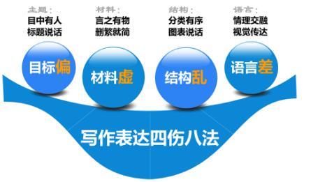 課程大綱: 第一講:文書表達(dá)四大傷 一、目標(biāo)偏 寫不到點子上,所寫不是領(lǐng)導(dǎo)想要的。 二、材料虛 空:套話連篇,空洞無物。 假:弄虛作假,好喜表功。 三、結(jié)構(gòu)亂 條理不清,先后不分,寫到哪里是哪里。 四、呈現(xiàn)差 太簡單:只講結(jié)論不分析,只講表象不提煉。 太啰嗦:只講細(xì)節(jié)無觀點,事無巨細(xì)不突出。 太猶豫:擠牙膏,一問一說,不問不說,讓人聽得干著急。