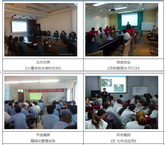 主講課程: 高、中層:《制造業(yè)全價值鏈精益化管理》、《中國式精益生產(chǎn):精細化生產(chǎn)管理系統(tǒng)打造》、《精細化管理之PDCA五重解讀與管理實務》、《VSM價值流管理》 中、基層:現(xiàn)場管理:《贏在現(xiàn)場之金牌班組現(xiàn)場管理》《贏在現(xiàn)場之八大浪費與IE七大改善》、《精細化管理之5S及目視化推行》、《贏在現(xiàn)場之標準化SOP實戰(zhàn)訓練》、《贏在現(xiàn)場之工藝管理與現(xiàn)場改善》、《計劃管理與執(zhí)行落地》、《生產(chǎn)計劃與物料控制》、《PMC少量多批與準時交貨》、《精細化倉儲及采購管理》 部分客戶(其中部分為培訓及咨詢項目同步進行): 事業(yè)單位:德寶恒生醫(yī)療器械、菊潭醫(yī)院、徐州建設中專、廣東南方電網(wǎng)、中煙南陽卷煙廠、、蚌埠卷煙廠、漯河卷煙廠、長沙卷煙廠、新鄉(xiāng)醫(yī)學院 企業(yè):深圳華為、東莞港芝電子、佛山萬家樂電器、香港茂森集團、天光科技、盈科電子、英群科技股份、東莞穎暉電器、東莞泰康連接器、東莞順晟電腦、河南環(huán)宇集團、新飛電器、科隆集團、北方儀表、香港中南印刷、維達紙業(yè)、深圳福興盛包裝、玖龍紙業(yè)、雋思印刷、佛山市博正包裝、河南威猛振動、佛山能拓工業(yè)爐、佛山市偉成機器、土禾通風設備、振源機械、豫通集團、廣東聯(lián)塑集團、廣東港豐集團、深圳市平進模具、湖南金聯(lián)星特種材料、華德汽車彈簧、江蘇法爾勝、南通永高鋼絲、泰合碳纖維(東莞)、廣東新能源、佛山本田汽車零部件制造、佛山市曄彩金屬噴涂、新星化工冶金材料、佛山市百麗池涂料、廣州美亞、河南中煙集團、廣東嘉士利食品、河南雙匯集團、湖南旺旺食品、河南大長遠集團、河南天地鵝業(yè)、中航工業(yè)豫北轉向器、河南廣瑞汽車部件、心連心化肥、孟電水泥、惟德化工……