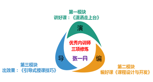 課程設計思路: 該課程設計了三項培訓師的核心技能:演好課、編好課、出效果! 技能一:“演”——講好課 技能二:“編”——編好課 技能三:“導”——出效果
